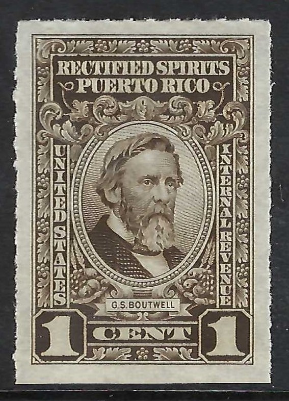 Puerto Rico 1942-57 1c sepia George Boutwell Rectified Spirits Revenue stamp #RE34 Unused No Gum as Issued Fresh & Very Fine to Extremely Fine. Choice and Outstanding Example!